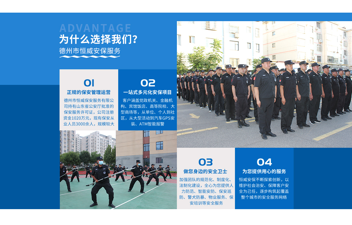 德州市恒威安保服務(wù)有限公司,注冊資金1020萬元。是經(jīng)山東省公安廳批準、德州市工商管理局登記注冊、具有獨立法人資格的專業(yè)保安服務(wù)公司,下設(shè)10個職能科室和業(yè)務(wù)部...